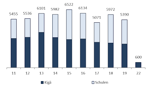 Anzahl Fluoridlack-Touchierungen in Kindergärten und Schulen